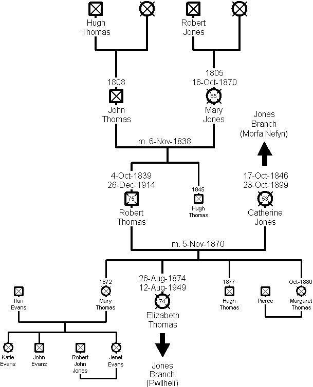 Family Tree - Thomas Branch Robert Thomas John Thomas Elizabeth Jones nee Thomas Jones Branch - Morfa Nefyn Jones Branch - Pwllheli